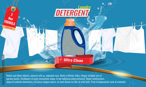 Laundry detergent for ultra clean washing.Template for laundry detergent. Package design for Washing Powder & Liquid Detergents. Vector illustration