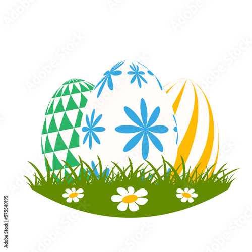 Green grass with Easter eggs on transparent background.Vector illustration