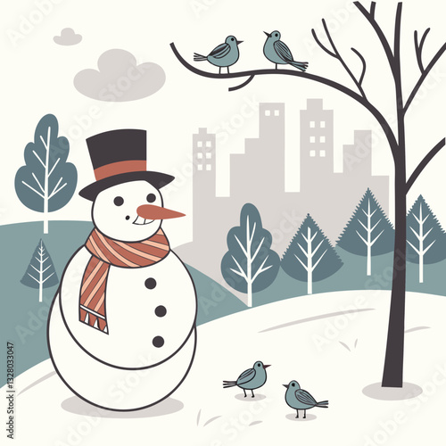 Vector art of diverse group of colleagues enjoying lunch together at a table in a modern office cafeteria with city view
