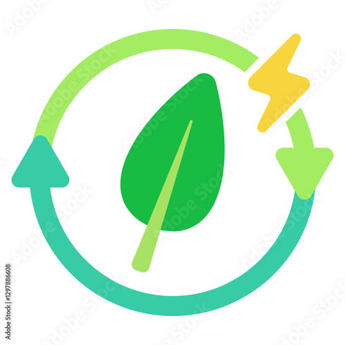 3D vector of a wind turbine and green battery with floating leaves