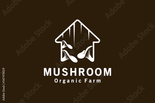 Mushroom Logo Vector , Mushroom silhouette, mushroom farm logo vintage vector illustration, Mushroom line art design