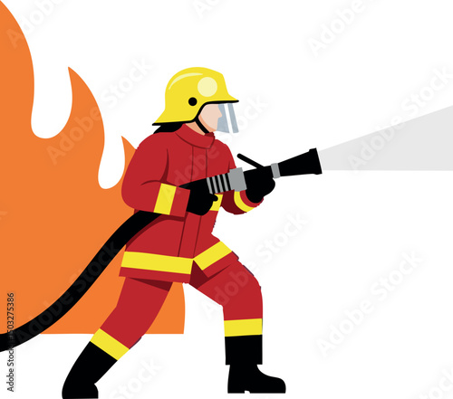 Firefighter silhouette, protective gear, emergency tools, helmet, hose, axe, rescue team, safety uniform, vector art, emergency response, standing pose
