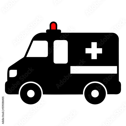Black silhouette of an ambulance vehicle isolated on a white background isolated on white background