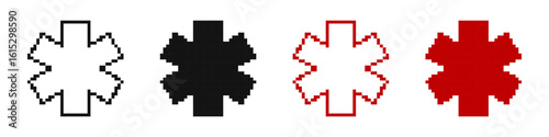Medical star pixel icons set. Medical alert emergency, EMT, EMS, Star of Life, Nurse, Doctor Caduceus, Medical Services.