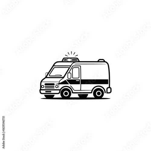 Monochrome Ambulance Illustration Emergency Vehicle Graphic Design