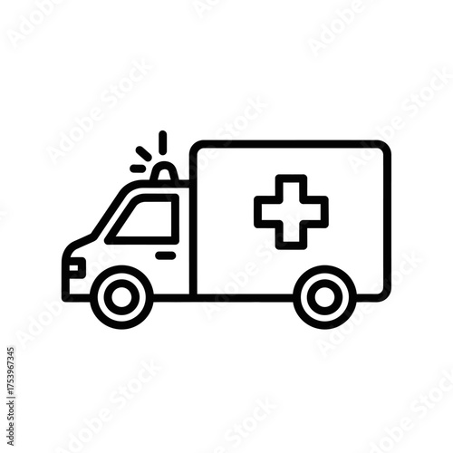 Ambulance. Outlined stroke vector icon with black-filled details.