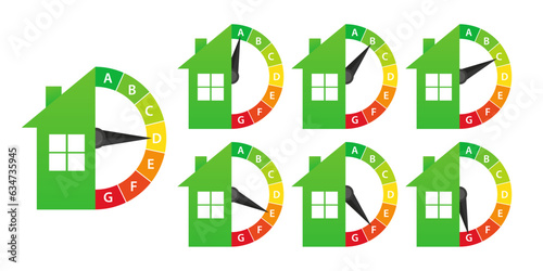 Energy class of house icon set. Energy efficiency rating certification system. Vector EPS 10