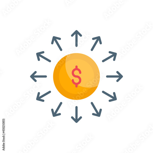 Increase money coins icon. Outline increase money coins vector icon color flat isolated