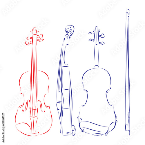 violin continuous line art drawing, Musical instrument for decoration, design, banners, festival invitations, music shop. Stringed music instruments concept. Vector