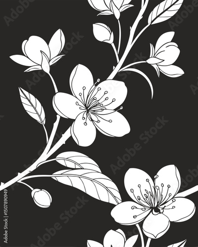 Line art of delicate flower with detailed petals and intricate stamen design. Vector illustration