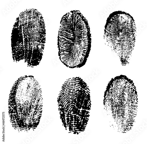 Fingerprint icons. Personal id identity. Press finger, scan for safety.  Unique touch id. Individual fingertip is verification in police. Semi-simplified fingerprint on white background. Vector