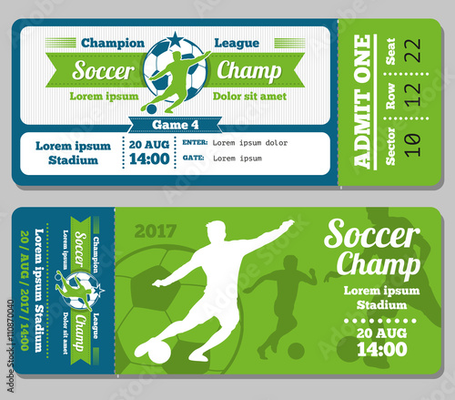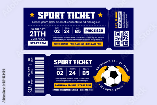 Football tournament sport event ticket vouchers design template easy to customize