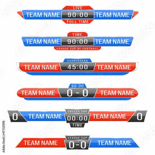 Soccer scoreboard, statistics, schedule or table template on red background vector illustration