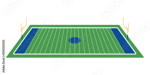 A detailed vector illustration of an American football field from a top-down perspective, featuring yard lines, end zones, and touchdown markings. Perfect for sports designs and strategy visuals