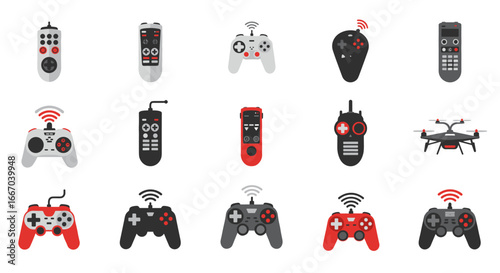 Collection of modern video game controllers and joystick silhouettes for digital entertainment gaming vector