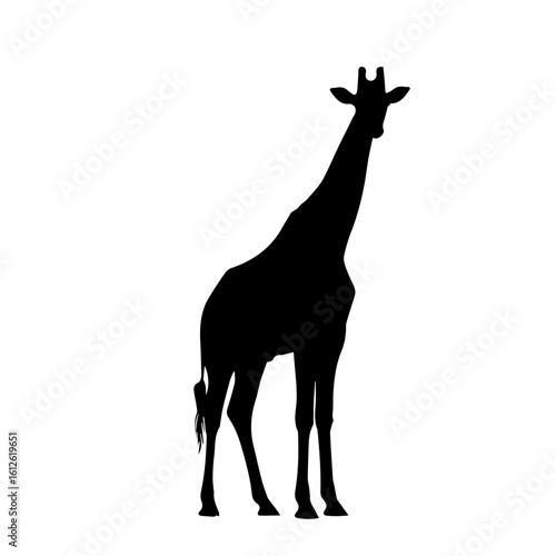 Elegant giraffe silhouette under a sprawling acacia tree, African savanna wildlife scene, giraffe with tree background silhouette vector illustration