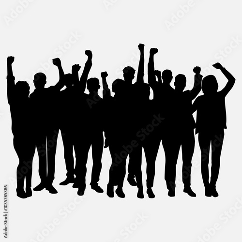 Unity and Togetherness: A group of individuals stands united, celebrating their collective success and shared aspirations. High fives and open arms express camaraderie and achievement.