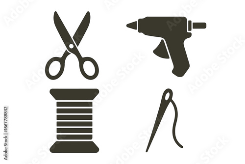 Sewing tools and garments: silhouette icons of dressmaking essentials