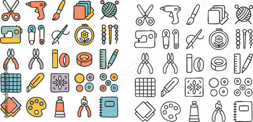 Set of 60 Craft, Diy, hand-made items . Editable stroke
