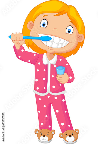 Cute cartoon long haired girl tooth fairy with big toothbrush color variation for coloring page on white background