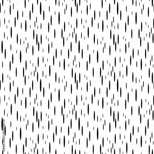 Bw handdrawn dash seamless patern with thin curved lines. Abstract simple bg with chaotic irregular strokes. Cartoon rain illustration.