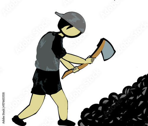 Farmer working with hoe silhouette cartoon illustration, symbolic labor and expressive gesture artwork for agriculture and lifestyle design