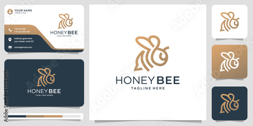 honey bee line logo design. vector symbol illustration and business card template .premium vector