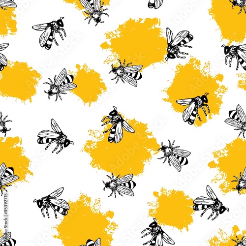 Seamless geometric pattern with bee. Modern abstract honey design.