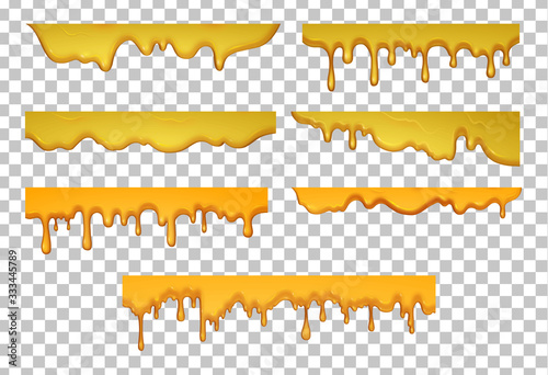 Illustrated dripping honey series on transparent background with copy space. Vector Illustration.