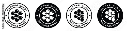Set bee logo labels for honey products organic farm emblem natural sweet product hight quality healthy food vector illustration.
