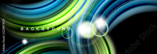 Mixing color waves on black, liquid flowing shapes