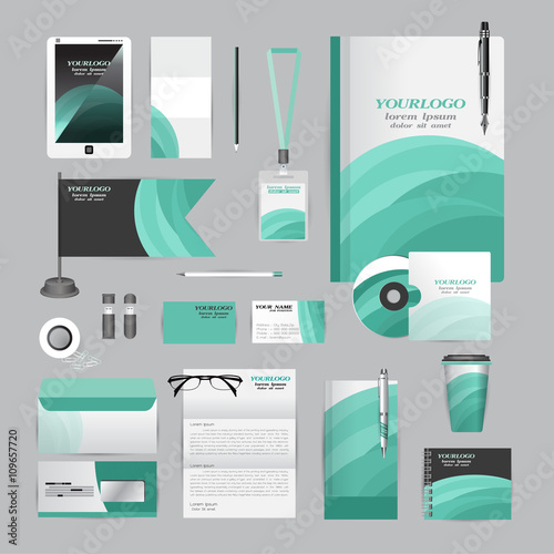 Corporate identity vector mockup with basic stationery set. Easy editable global colors & logo in symbols.