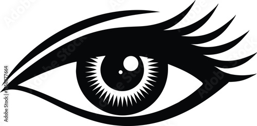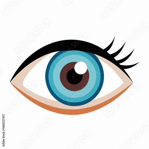 A captivating eye vector illustration, perfect for logos and designs, features a detailed eyeball with a prominent iris and delicate eyelashes, symbolizing vision and beauty