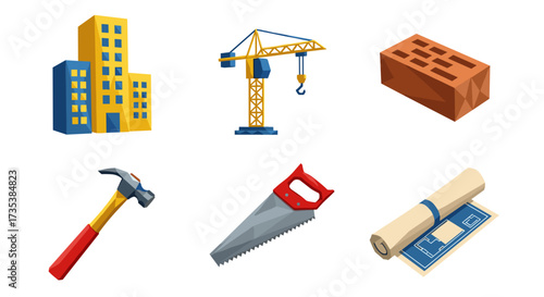 Illustration of a coping saw with a red frame and a brown handle isolated on white background