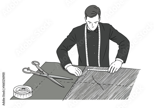 Silhouette of a person sawing wood on a workbench with a hand saw in a woodworking project scene