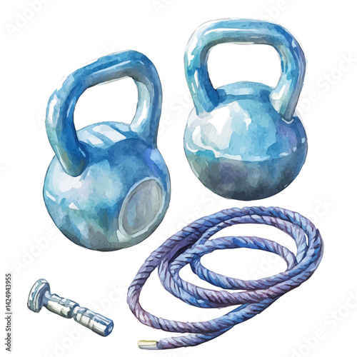 Essential gym equipment: kettlebell, jump rope, gloves, chalk for fitness