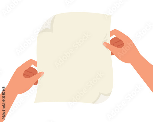 Female Hands Holding a Blank White Paper Sheet on Vibrant Pink Background. Creative Communication Concept Mockup Template