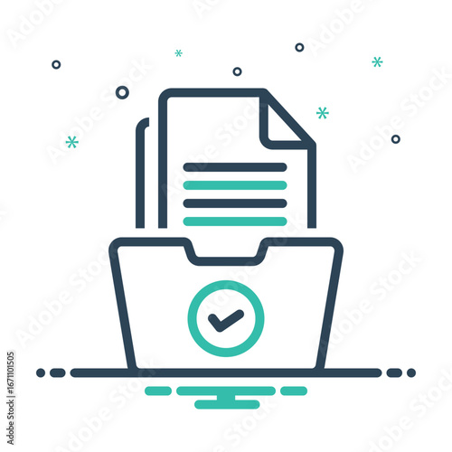 Laptop record keeping icon outline vector. System account. Invoice folder