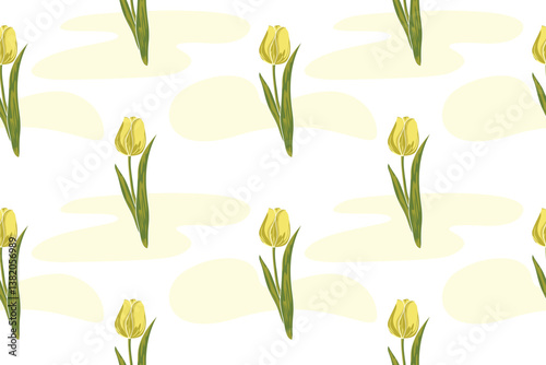 Hand drawn  seamless tulip pattern vector, a symbol of the Netherlands, used in textiles, home decor, scarves, paper printing, packaging patterns, and tiles.