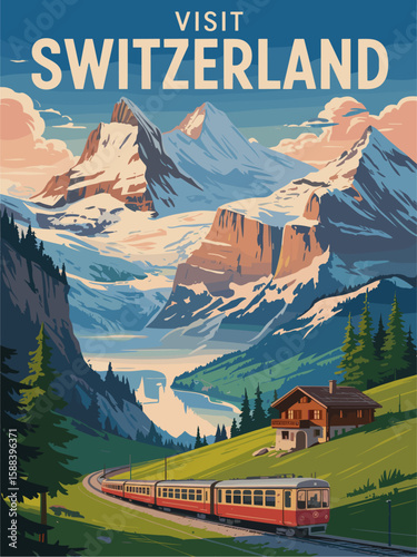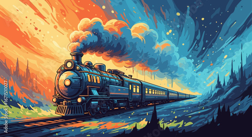 Vintage Steam Train Illustration: Travel by Rail Transportation.