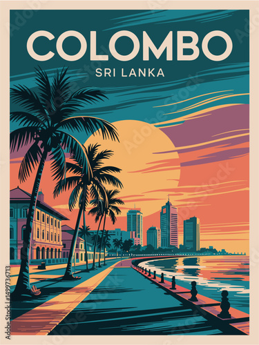 Colombo, Sri Lanka City Skyline. Silhouette Illustration Clip Art. Travel Design Vector Landmark Famous Monuments.