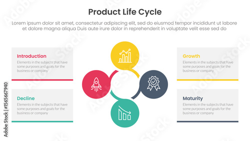 product life cycle stages infographic 4 point stage template with circular circle cycle linked for slide presentation