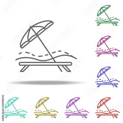 Umbrella chaise longue icon. beach chair. Pictogram isolated on a white background.
