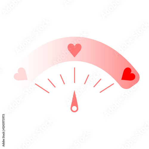 Heart-themed gauge illustration in minimal style showcasing love intensity with red hearts and a black needle in vector art