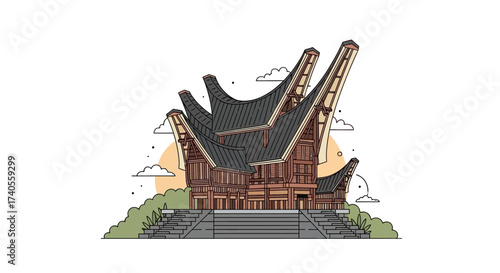 Taj mahal line art illustration. iconic mughal mausoleum, a historical landmark and architectural masterpiece in india.