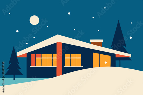 Retro mid century modern merry christmas greeting with starbursts and geometric shapes