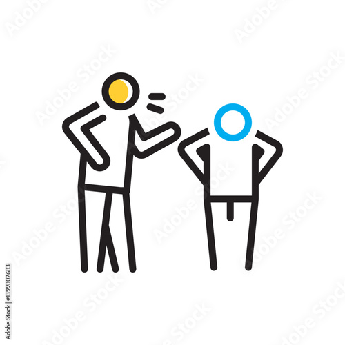 Parent mediating conflict between fighting siblings, black glyph icons showing childhood anger and misbehavior