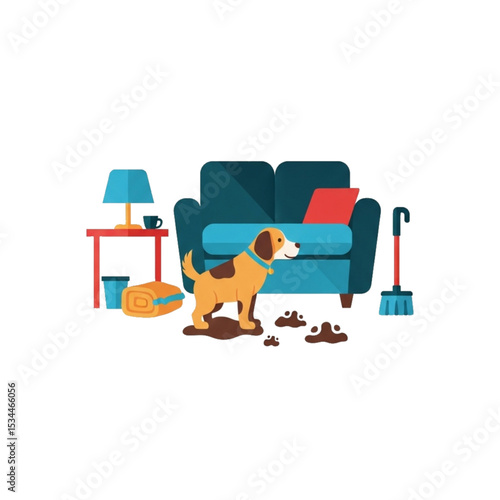 A little boy broke a glass vase with a soccer ball. Feelings of guilt and frustration. Cartoon vector illustration isolated on white background