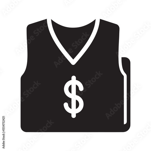 Charity volunteer vest icon for a fundraising worker representing a non profit organization uniform for a donation campaign and community event vector solid glyph icon