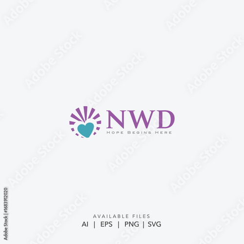 Modern hope and care abstract logo design, Vector icon for wellness and non profit organization, Radiating heart symbol for mental health foundation